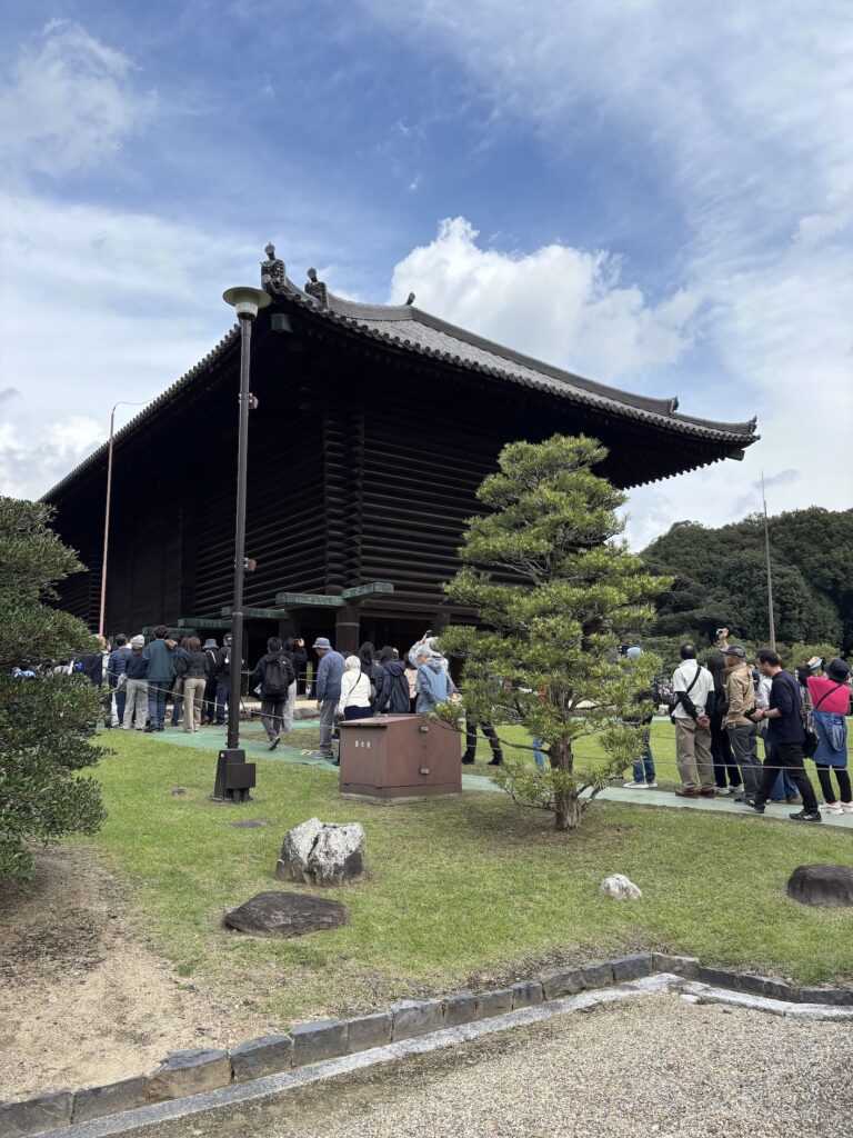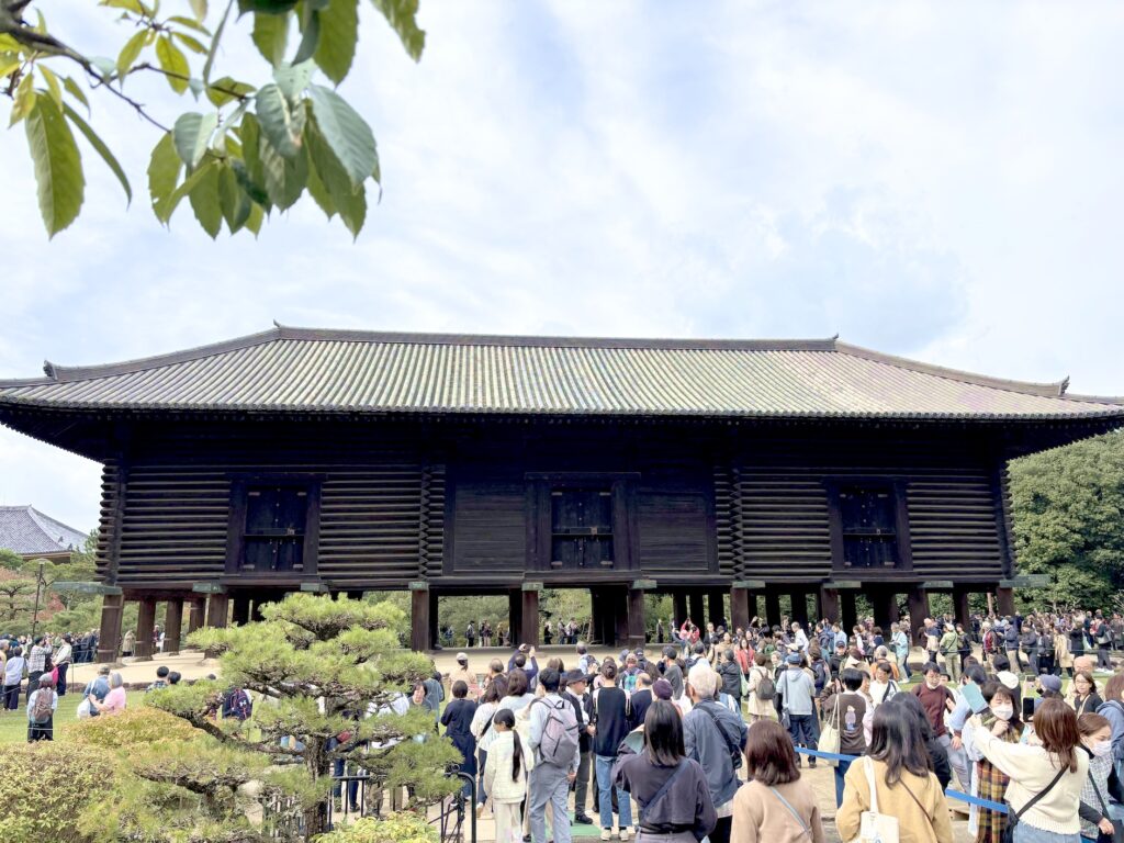 宮内庁により、正倉院はこの時期に「外構公開」として恒例で公開されていますが、離れたところから建物の正面を見学できるのみにとどまっていました。しかし今年は「特別公開」ということで、もっと間近で、しかも建物の全景を一周して見学できるというとても貴重なものでした。