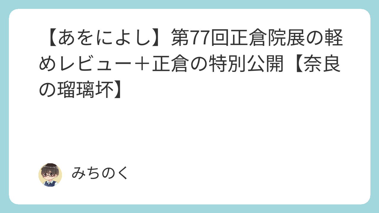 いい思い出になりましたね。瑠璃坏に再会できるのは何年後でしょうか…また会う日まで正倉院でお眠りください。