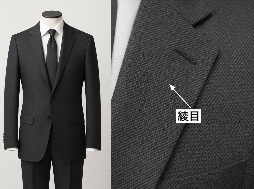 スーツの上品さを感じる質感やしなやかさは綾織りの技法が効いている