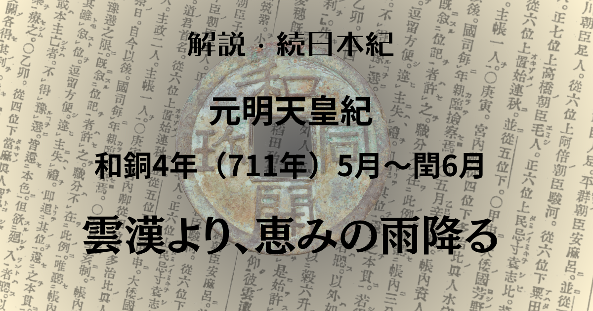 【現代語訳】続日本紀 元明天皇紀 和銅4年② 雲漢より、恵みの雨降る