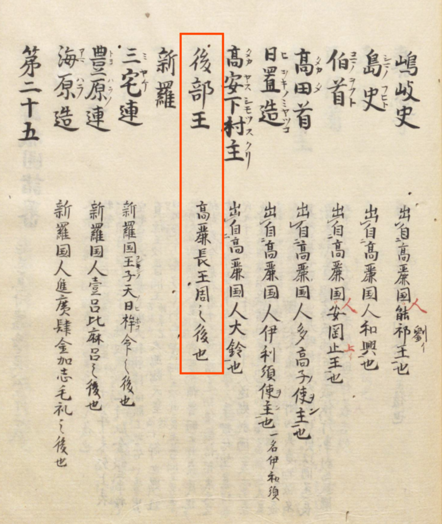 氏族名鑑『新撰姓氏録』の右京諸蕃(下)には後部王氏は「高麗の長王周の後なり」とあります。この長王周という人物がそもそも王族なのか名前から判断し難く、歴代の高句麗王を探ってもこれに相当する名前が見えないのですが、少なくとも奈良時代においては、その子孫に「後部王」の姓が授けられていることから、日本は彼らを高句麗の王族を祖に持つ氏族と認識していたようです。