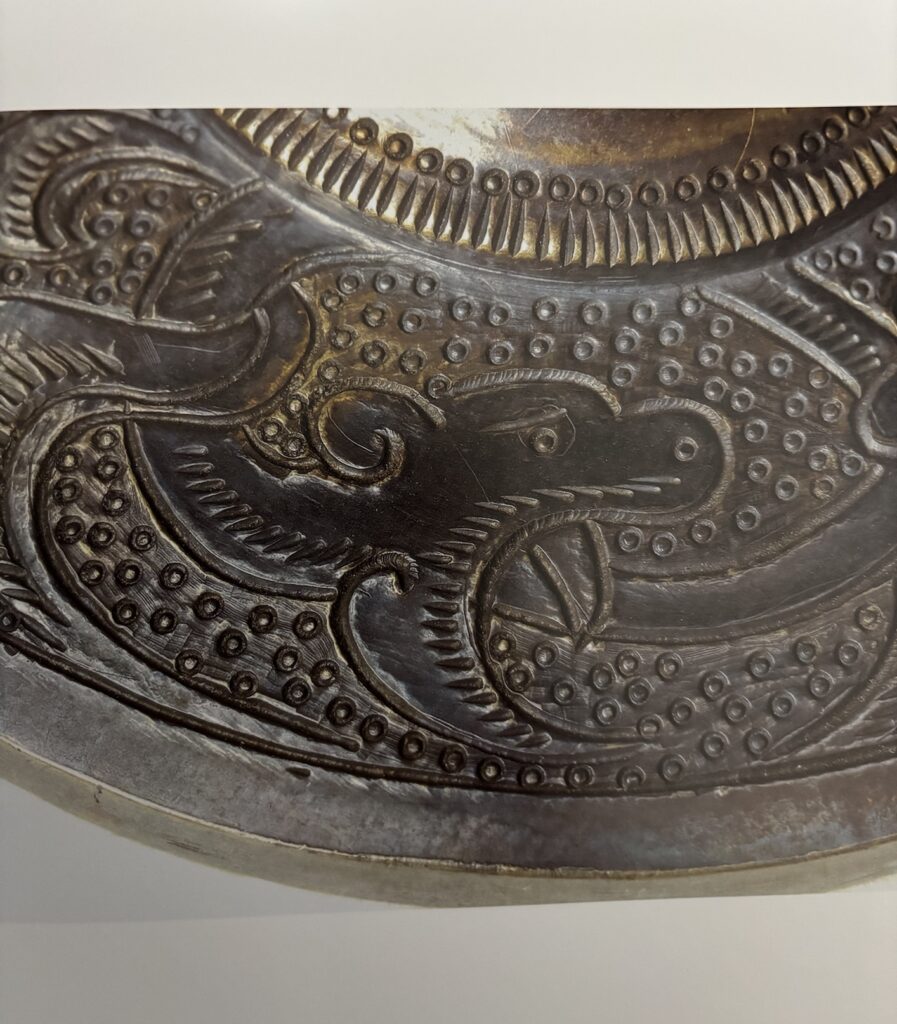 こういう時は、目当ての宝物ひとつに目標をしぼって他は潔く諦めるか、割り切ってほんの数秒の流し見程度にとどめるのがストレス回避のテクニックかもしれません。キャプションに書かれた解説や細部の意匠などは目録でゆっくり見ることもできますから。
