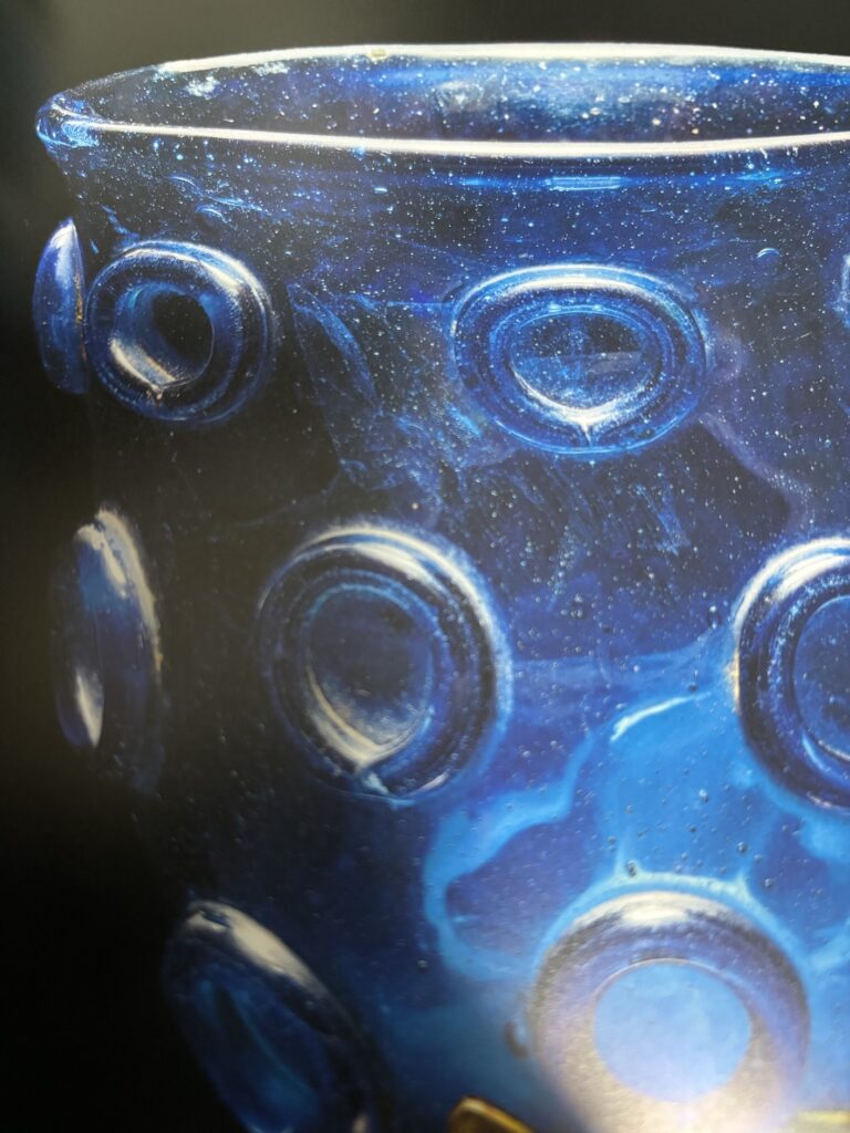 当時ガラスは超レアで高級な舶来品でした。東アジアにおいては、ビーズなど小さなガラス製品はあったものの、グラスほどのサイズ感のものは西アジア由来の貴重品であり、他例が「ほぼ」ありません(ほか、ササン朝ペルシャ製の「白瑠璃碗(宮内庁公式)」が代表例です)。