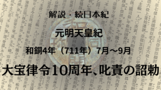 元明天皇紀 【現代語訳】続日本紀 元明天皇紀 和銅4年③ 大宝律令10周年、叱責の詔勅 701年大宝律令施行から10年。節目として律令制が当初の想定通り正しく機能しているかの決算を行いたかったのか、朝廷は数々の叱責するような詔勅を渙発。 2025.10.16 元明天皇紀和銅年間巻5(和銅3年正月〜5年12月)続日本紀